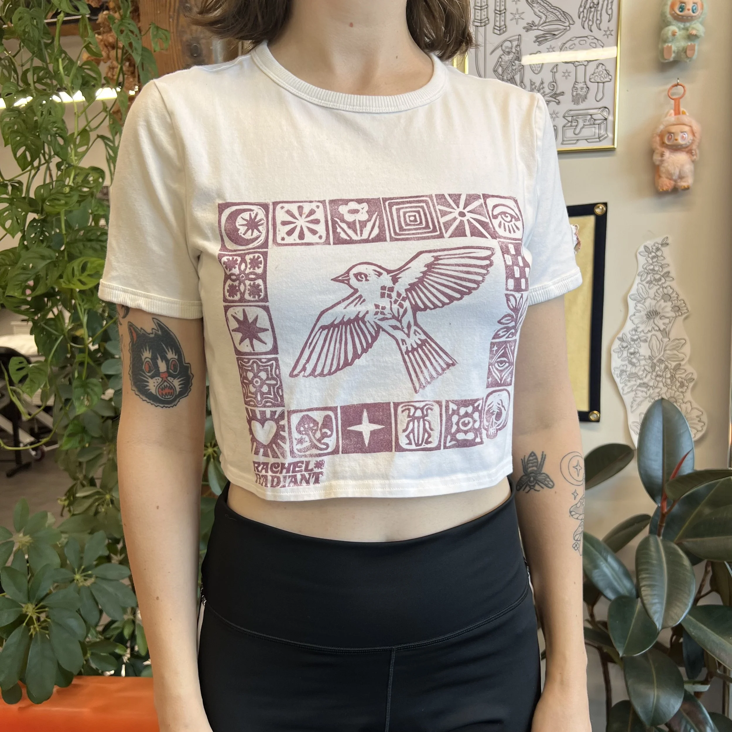 Tattoos Hand-painted Air Dry Clay morel trinket tray ladybug magnet two rabbit trinket dish rabbit magnet lover’s eye magnet mini kitty paint palette rabbit magnet ocean trinket dish and butterfleye magnet Block prints ICE OUT loon block print 1-of-1 block printed + upcycled tote collab x @nmore.studios magic moth block print checkered block printed upcycled tote bag collab x @nmore.studios block printed 1-of-1 rachel radiant tshirt quilted block printed vest patchwork tote bag 1-of-1 collab x @nmore.studios folk bird block printed shirt with custom mixed ink wild horses block printed sweater 1-of-1 block printed + upcycled tote bag collab x @nmore.studios more examples on my instagram