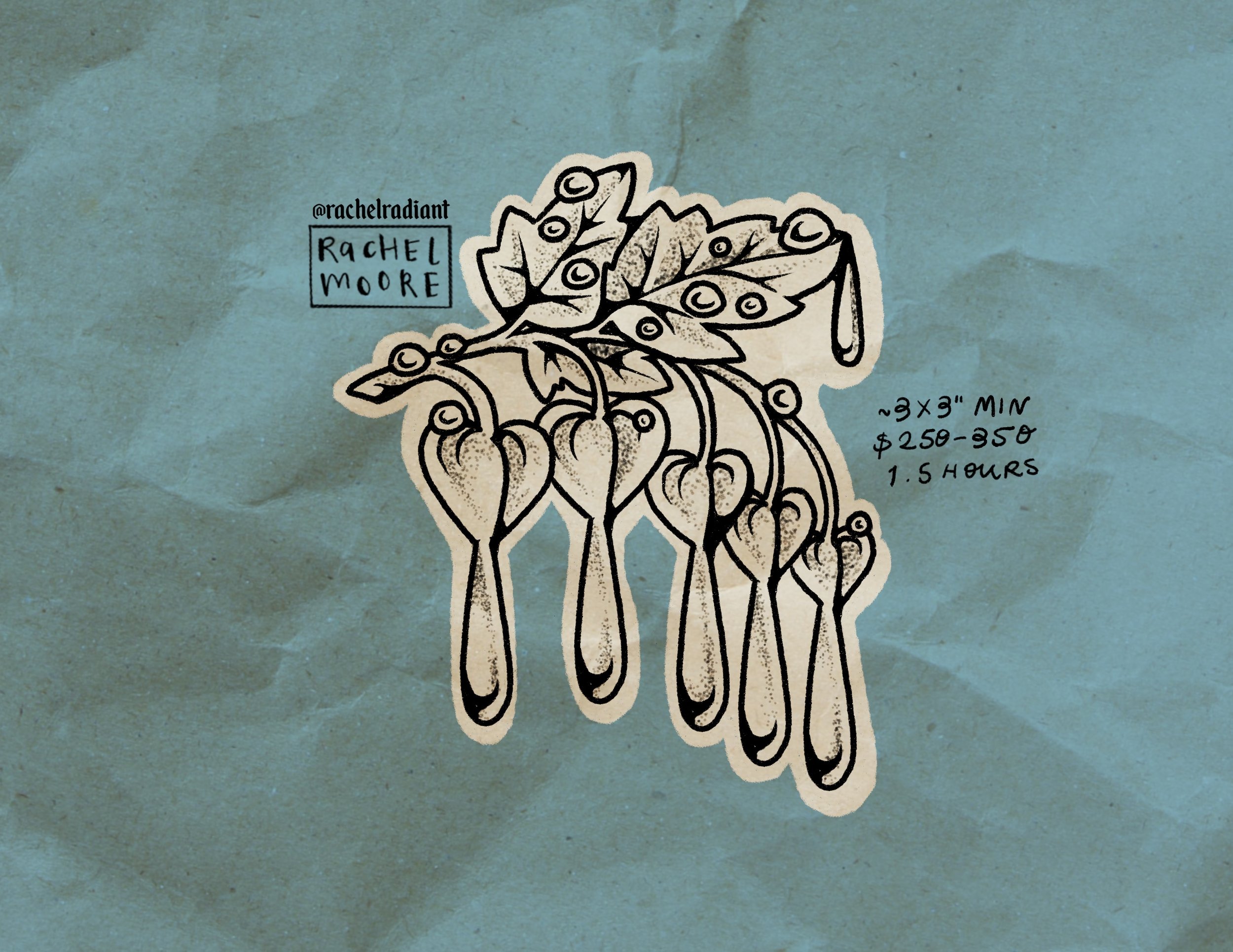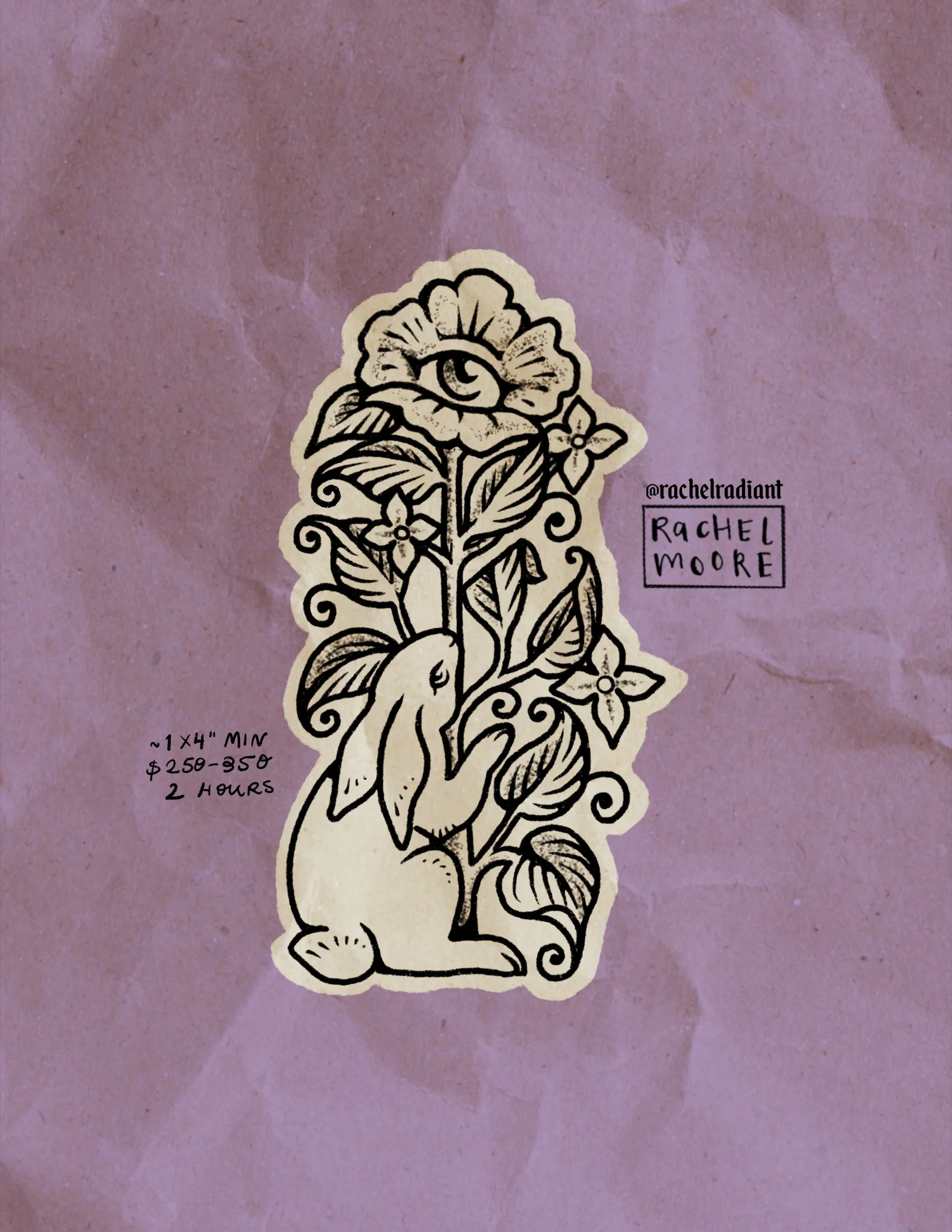 to claim your favorite design to be tattooed, pay the $50 up-front deposit prompted by your chosen design listing, and from there you’ll be given a link with access to book your tattoo appointment through my website. the link and passcode to my booking page will be in the confirmation email.