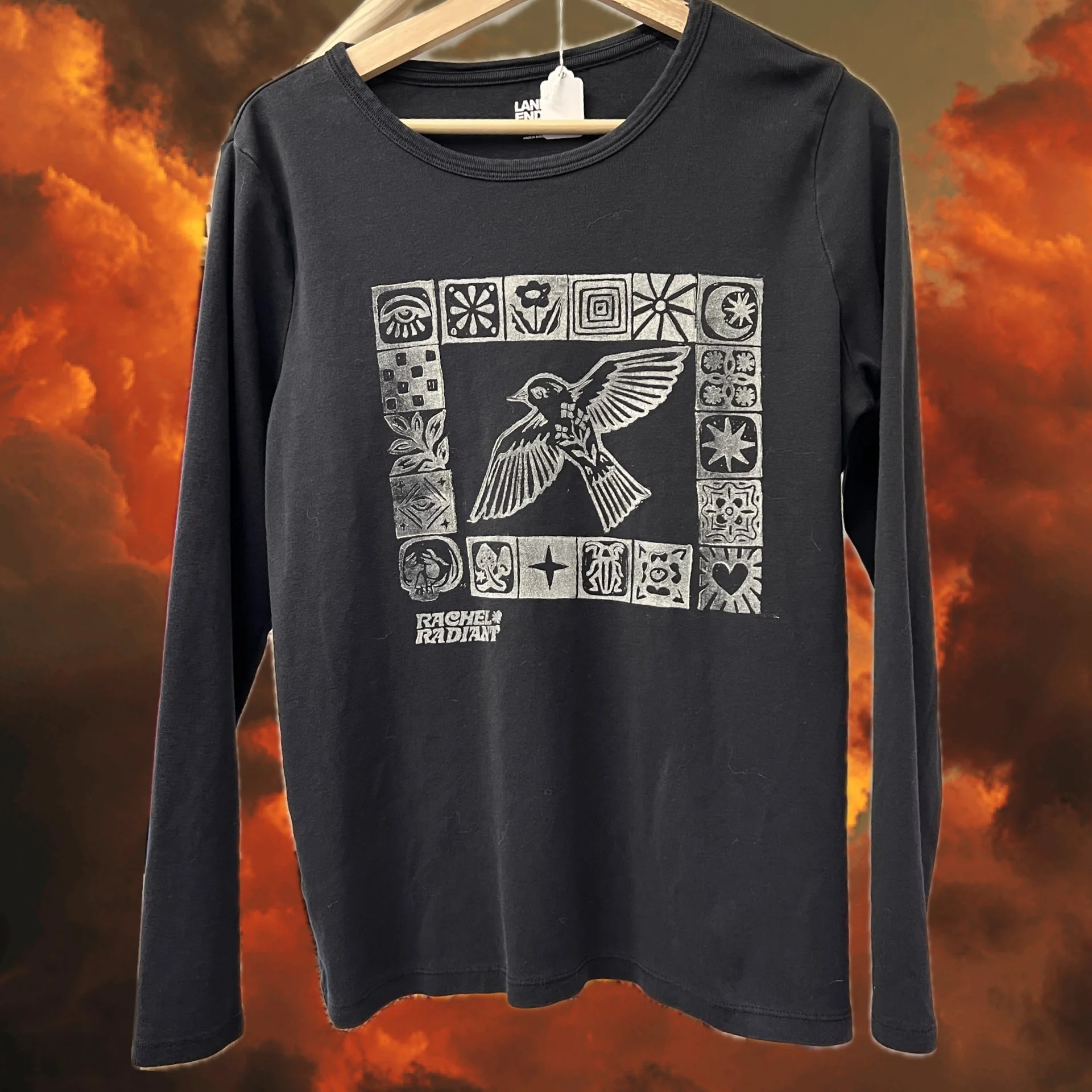 TLDR design drop #18 rundown: on monday 11.17 at 8pm CST, seventy-some new pre-drawn tattoo designs, some new upcycled block-printed radiant clothing items in various sizes, and some new art prints will go live here on my website.