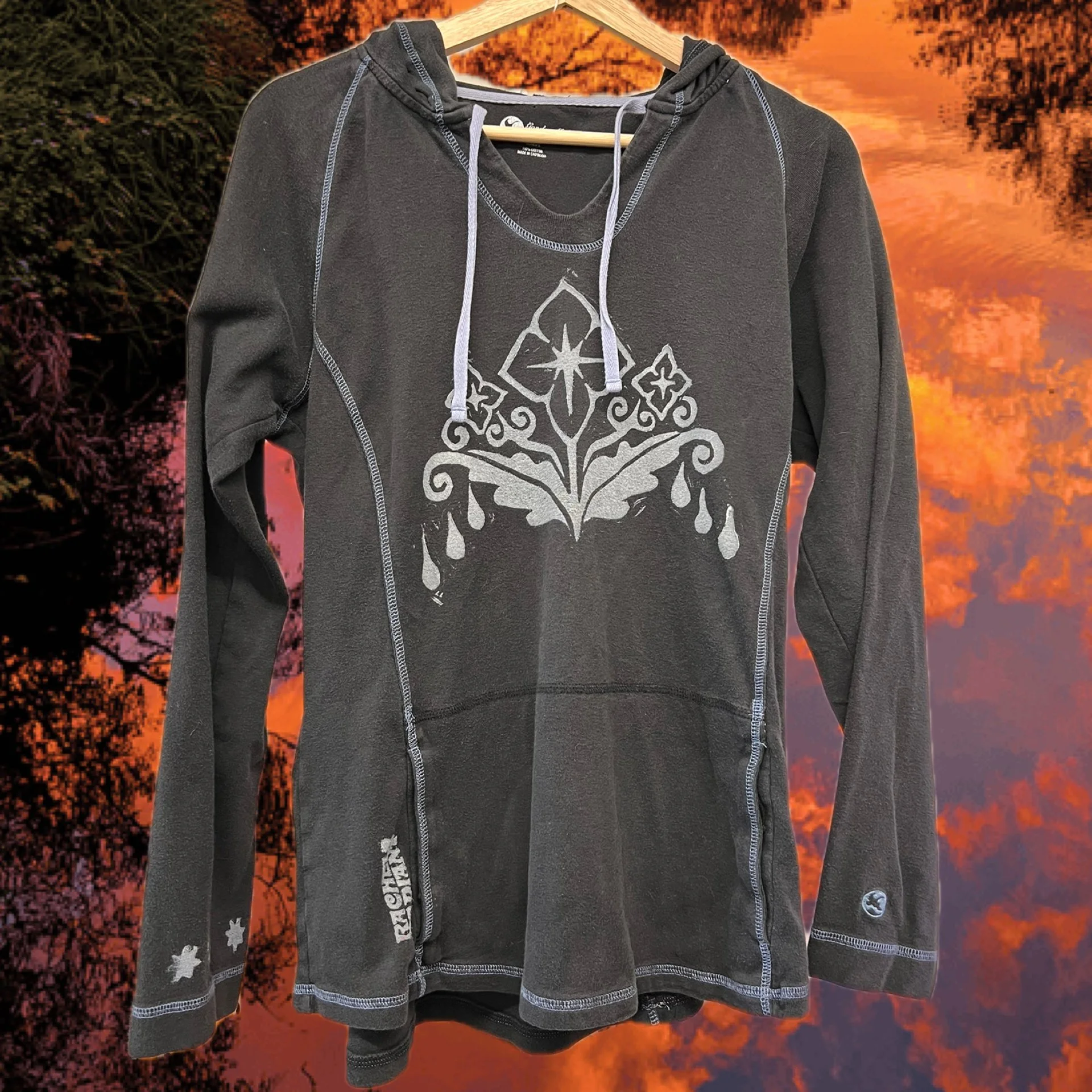 using two new large-scale hand-carved and printed block print designs, i’ve designed and inked about a dozen new upcycled clothing items with care and intention. the clothing items are secondhand, all are pre-washed. you can check ‘em out at my studio, or buy yours through my website. they can be shipped within the USA, or we can coordinate a local pickup at patchwork studio.